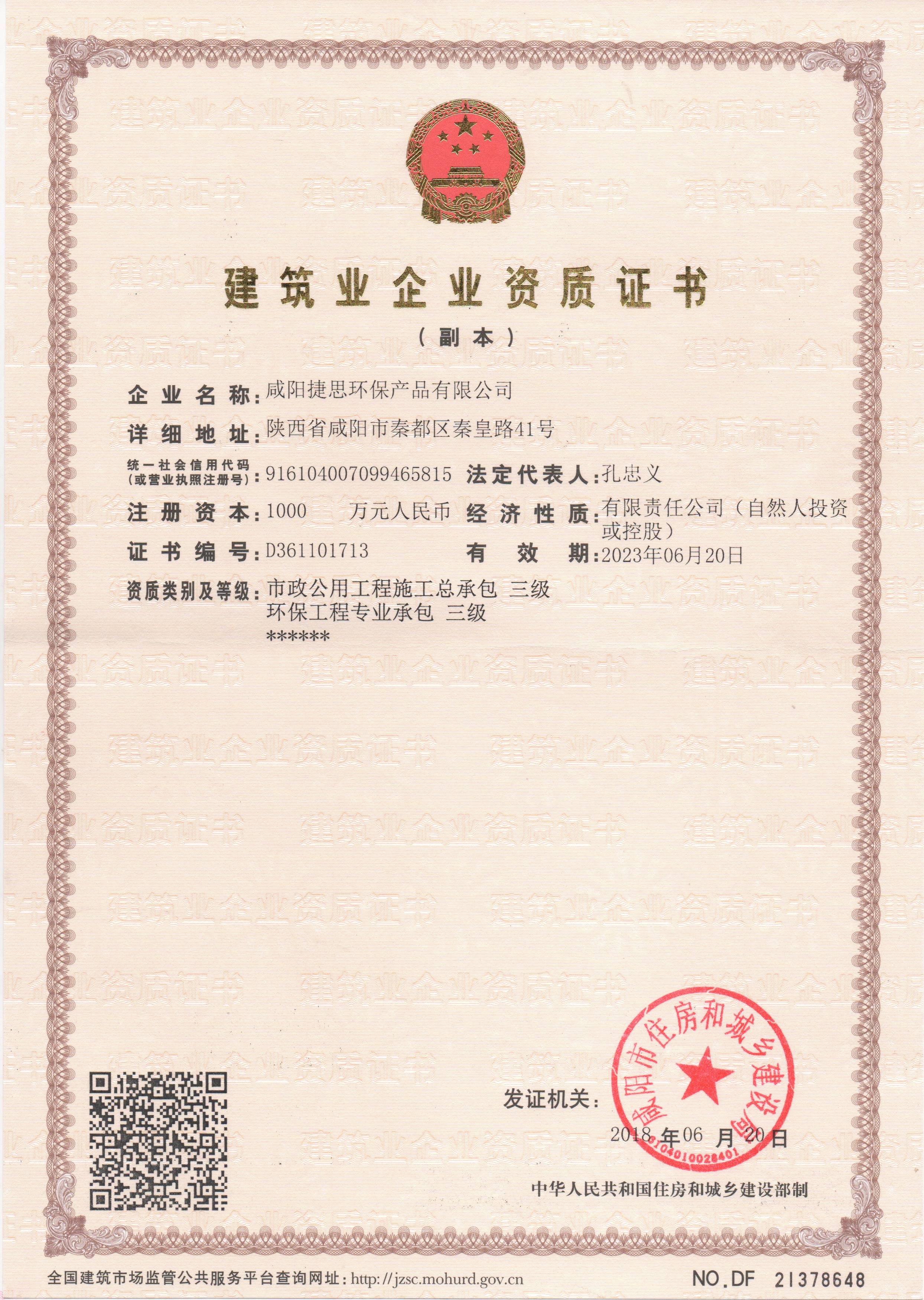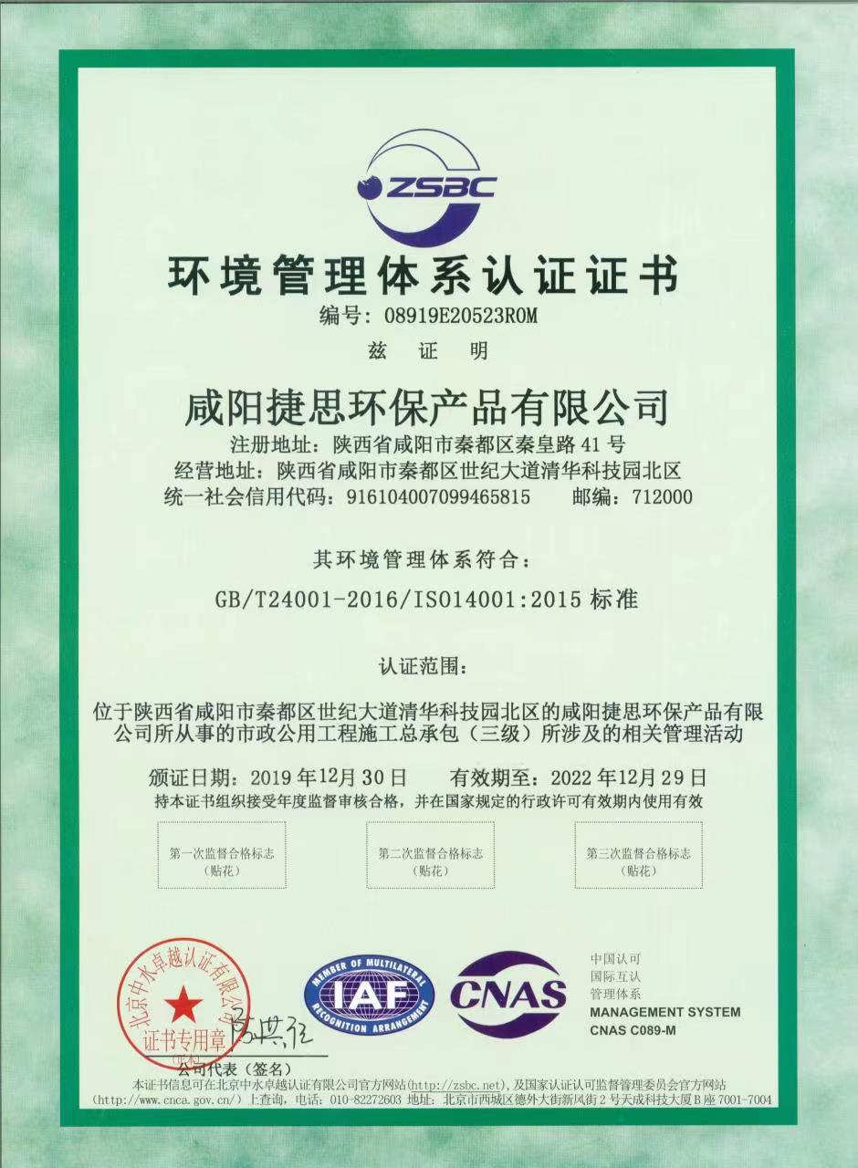 咸陽捷思環(huán)保產(chǎn)品有限公司,位于美麗的古城咸陽,創(chuàng)建于1998年,已獲得市政公用工程施工總承包、環(huán)保工程專業(yè)承包、安全生產(chǎn)許可證等。本公司長期致力于水處理設(shè)備的研究與開發(fā),注重采用當(dāng)今先進的技術(shù),不斷的改進加工工藝,使我們的產(chǎn)品不斷推陳出新,在國內(nèi)遙遙領(lǐng)先,在國際上已具有相當(dāng)?shù)母偁幜Γ淞己玫馁|(zhì)量和優(yōu)質(zhì)的售后服務(wù),贏得了全球用戶的認同及信賴。